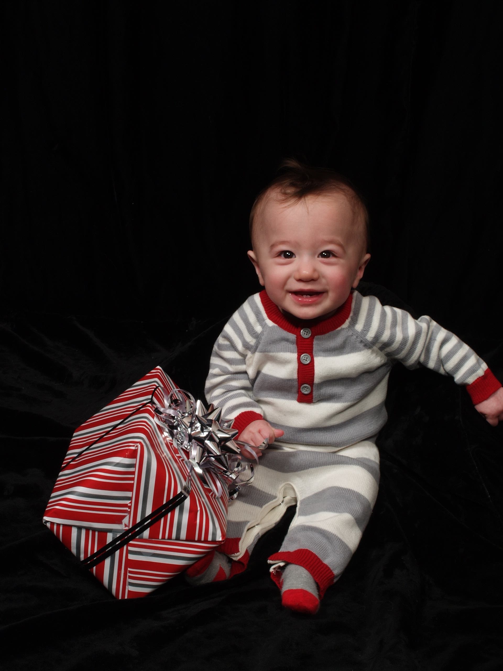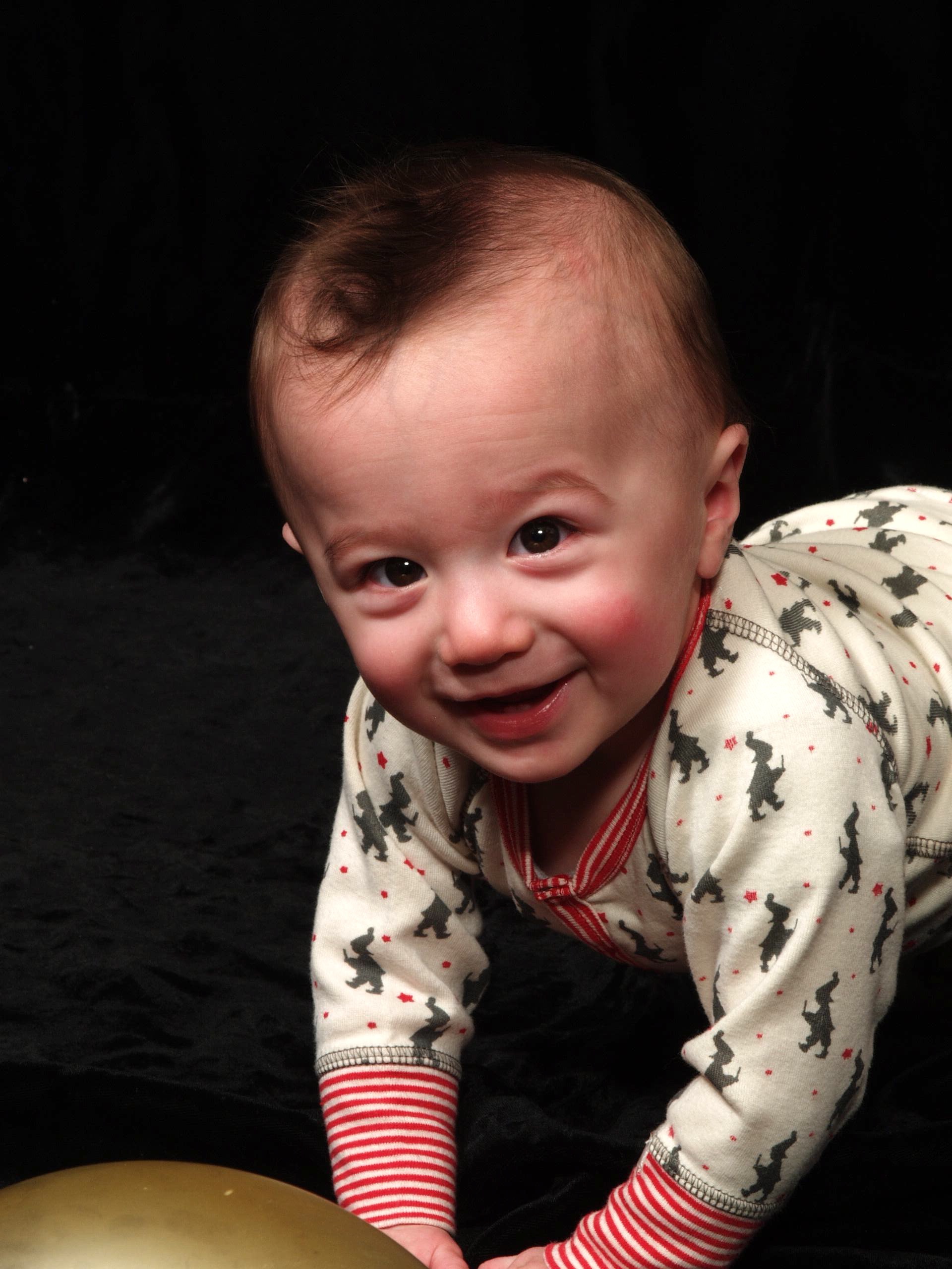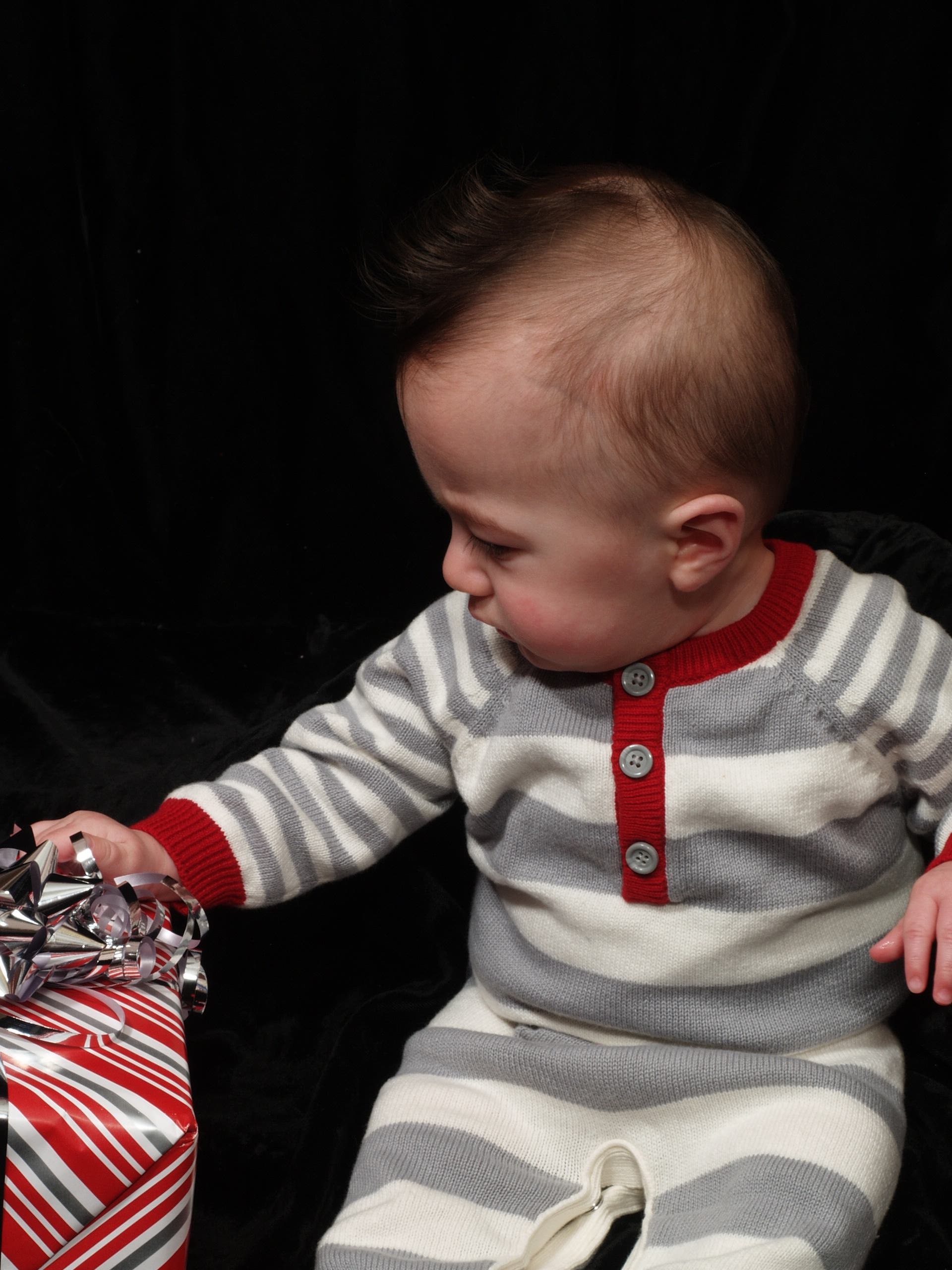 Now for some “Countdown to Christmas with Max”! Max was quite enthralled with the large gold Christmas ornament at the studio. It’s hard to believe that we’re almost at the 9 month mark!