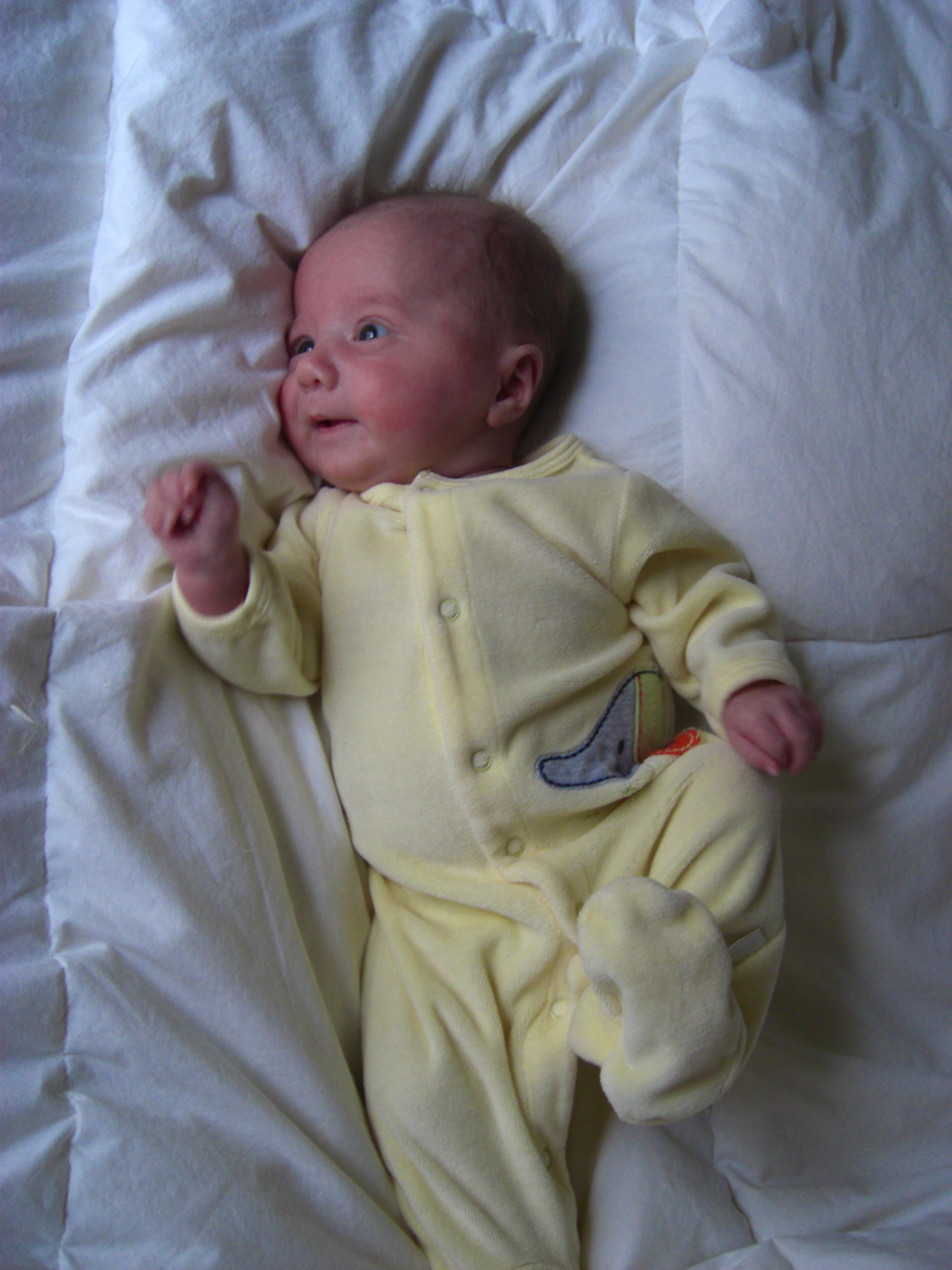 I picked up the little yellow elephant outfit at Osh K’osh when I was about 8 or 9 weeks pregnant and had no idea if we would have a boy or a girl. I was so excited when he was big enough to wear it- it’s tucked away now, one of my dearest mementos of his early days.