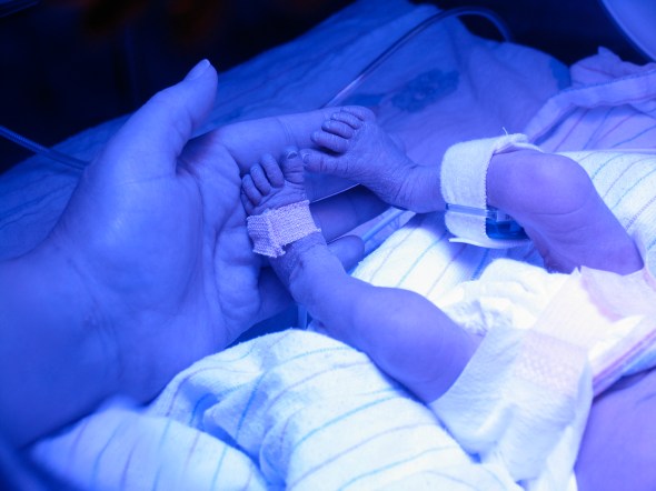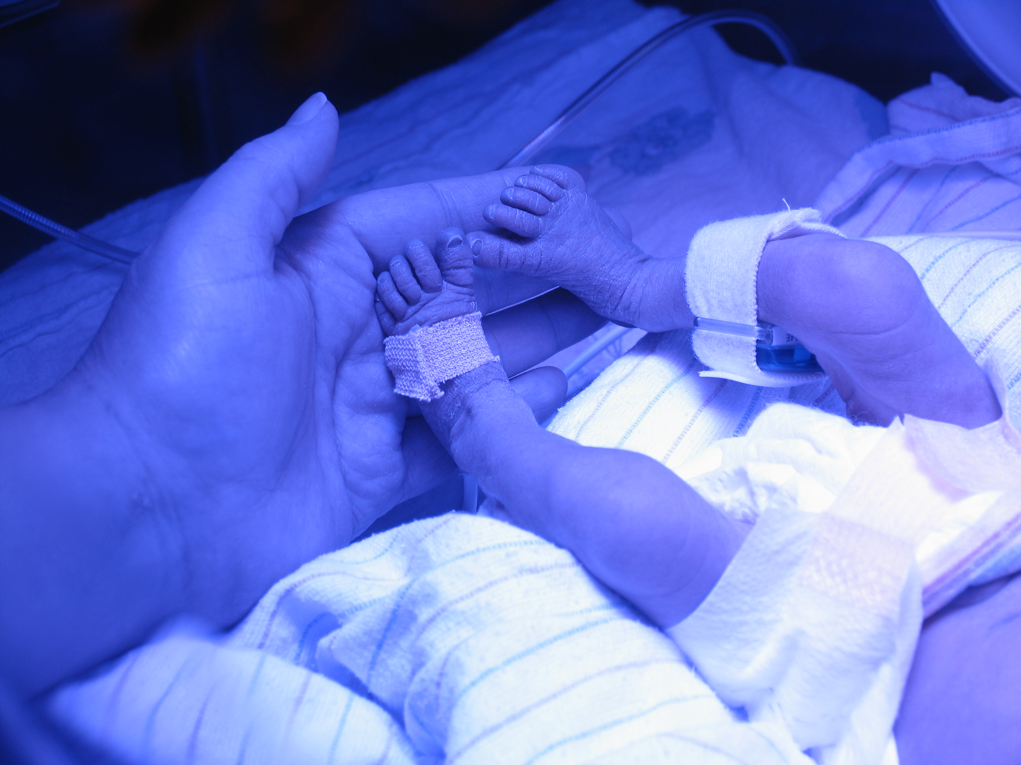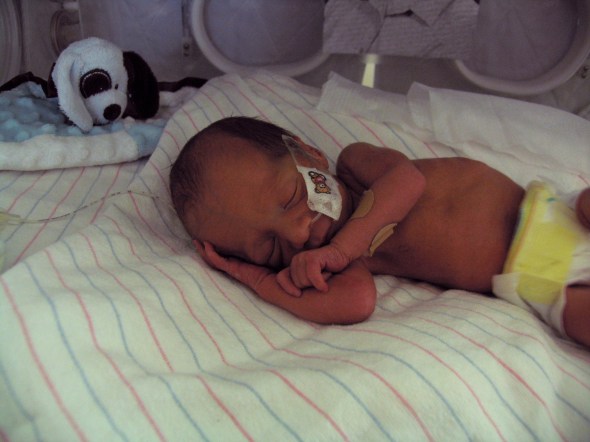 Max, 10 days old, sleeping in his isolette. I was always amazed how he just swam in the newborn size diapers. We eventually brought in some preemie-sized Huggies (they were still a bit too big initially!)